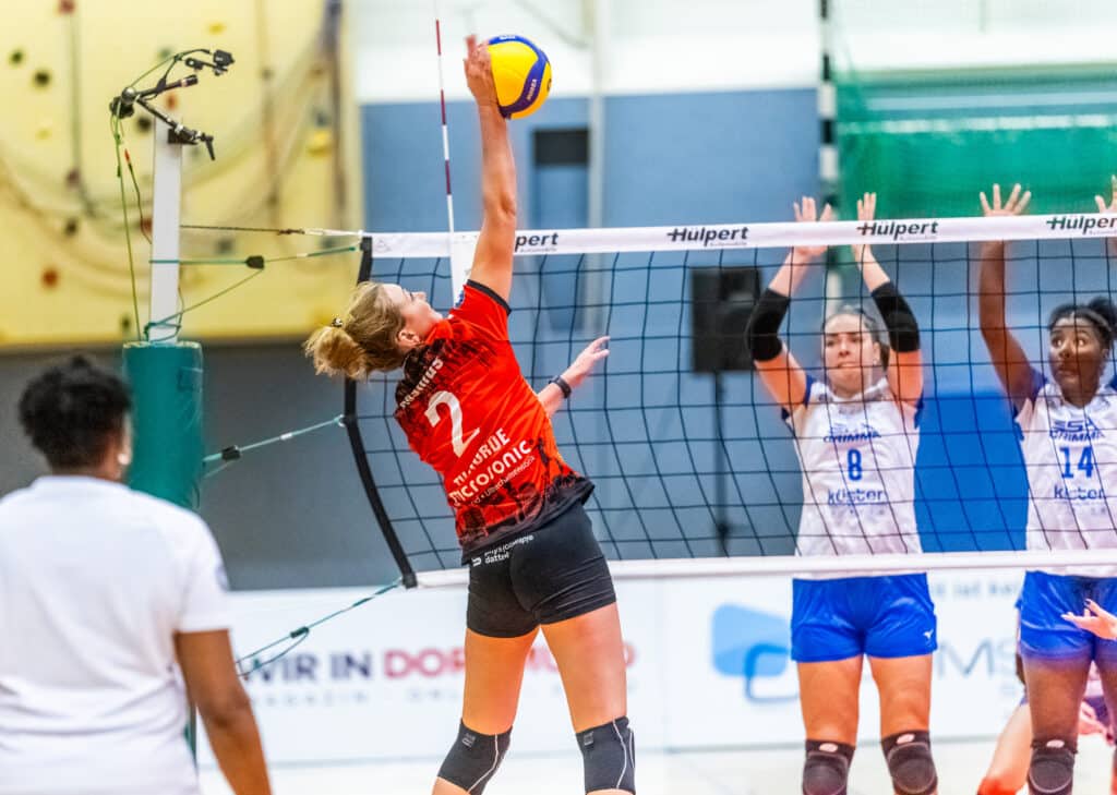 So startete der vierte Satz. Die drei Punkte waren immer noch möglich und Teee Slacanin, Hörder Trainerin, versuchte die Mädchen wieder „aufzuwecken“. Sie mussten nun diszipliniert und schlau spielen um das Spiel zu beenden. Dabei war vor allem die Strategie den letzten Satz zu vergessen und da weiter zu machen, wo sie nach dem zweiten Satz aufgehört hatten. Dies gelang nur halb. Nach anfänglichen Startschwierigkeiten hatten sie nach 7 Minuten eine Führung von 5:3. Diese Führung konnten sie jedoch nicht halten und so musste Teee beim Punktestand von 7:8 ihre erste Auszeit nehmen. Auch im dritten Satz schaffte es die gegnerische Zuspielerin Hannah Polzin ihre starken Angreiferinnen in Szene zu setzen, Sodas unser Block leider nicht vollständig mitkam. Dies sorgte für sehenswerte Angriffe, die den Hörder Boden fanden. Bei 15:11 nahm Jorge Ricardo Munari seine Auszeit. Die Hörderinnen hatten durch eine stabile Annahme und die gute Ballverteilung das Spiel verteilt und es den Gegnerinnen schwer gemacht. Nach der Auszeit des Trainers ging es jedoch erstmal Bergab. Teee nahm beim Punktestand 15:15 die letzte Auszeit und nun waren alle Mädchen auf dem Feld auf sich gestellt. Am Ende dieses spannenden Satzes machten unsere Gäste den Satzausgleich indem sie sich den vierten Satz mit 18:25 sicherten.